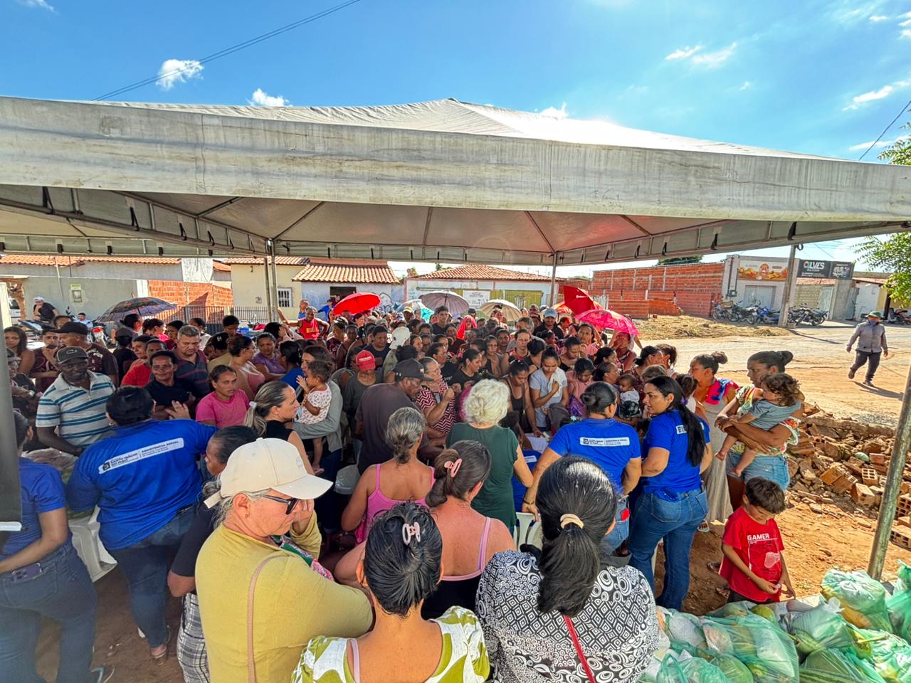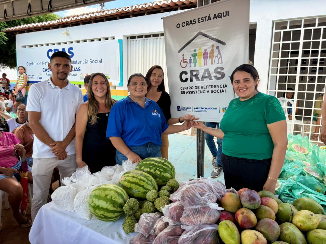 Os alimentos, produzidos pela agricultura familiar, foram distribuídos à população por meio do Centro de Referência de Assistência Social (CRAS). A entrega priorizou as famílias beneficiárias do Programa Bolsa Família, mas também contemplou outras pessoas presentes no momento da ação.