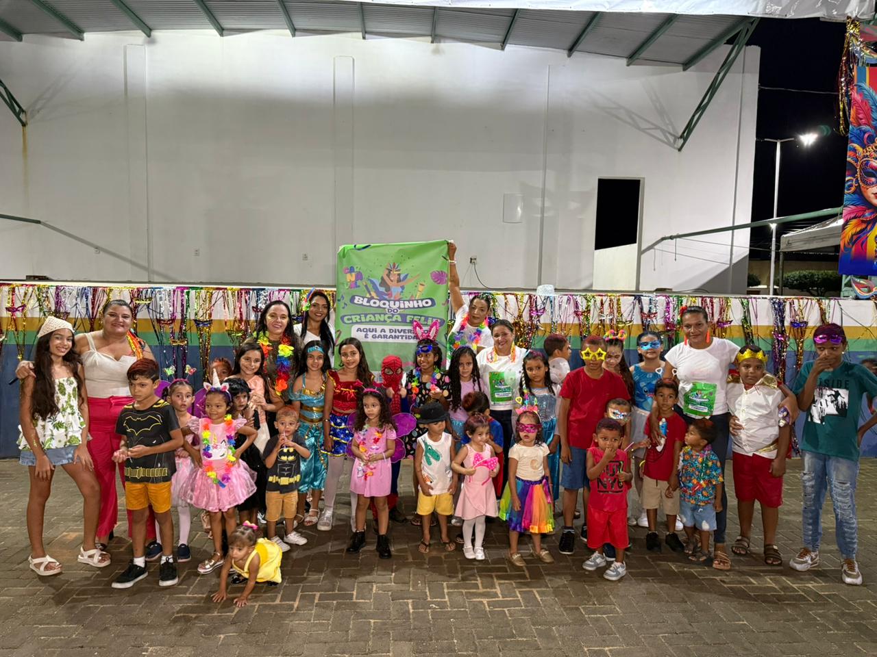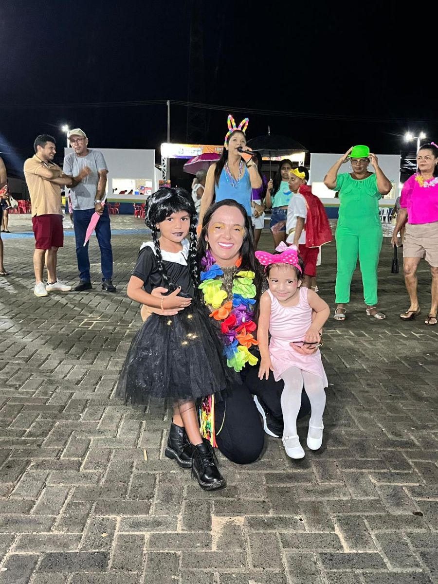 Com adereços disponibilizados, a festa começou com a Matinê das Crianças, envolvendo participantes do Programa Criança Feliz, do Serviço de Convivência e Fortalecimento de Vínculos (SCFV) e a comunidade em geral.